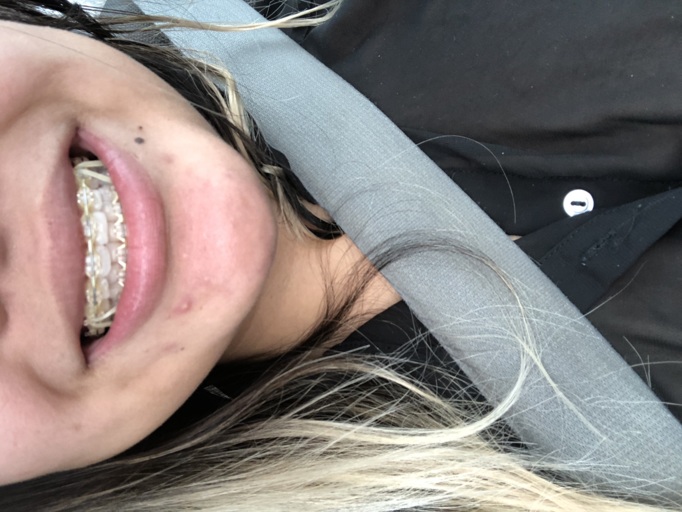 Okay so, to explain this I have over crowding in my bottom front set of teeth. Whats happened is you know you have the front 4 teeth, one of the middle teeth to be exact the right middle one has been pushed back into my mouth behind the other 3....