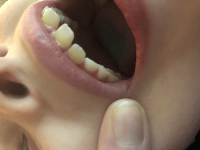 Hello! My 8 yr old has 4 lower adult teeth that are creating grooves in the roof of her mouth behind her upper front (adult) teeth. Her two upper front adult teeth also have a significant gap and are twisted apart. The outer corners of these...