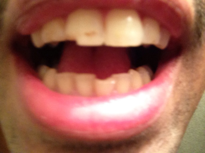 Okay so, to explain this I have over crowding in my bottom front set of teeth. Whats happened is you know you have the front 4 teeth, one of the middle teeth to be exact the right middle one has been pushed back into my mouth behind the other 3....