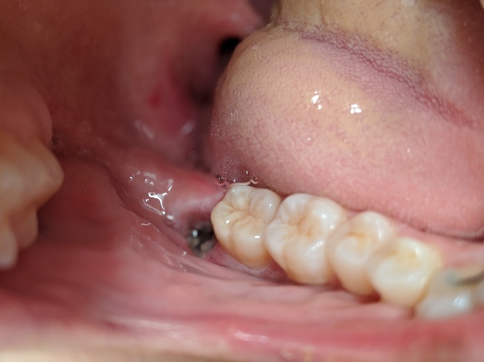 I just had all 4 wisdom teeth removed 3 days ago and this is on the bottom left side and I can’t tell what it is. It is only on the left bottom side and from trying to look it up on the internet I can’t tell if it’s an infection or not.