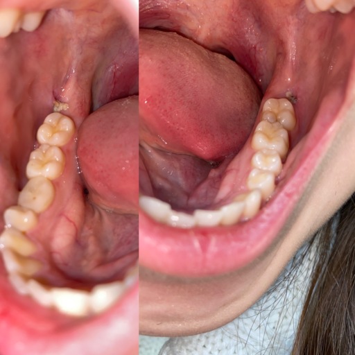 I just had all 4 wisdom teeth removed 3 days ago and this is on the bottom left side and I can’t tell what it is. It is only on the left bottom side and from trying to look it up on the internet I can’t tell if it’s an infection or not.